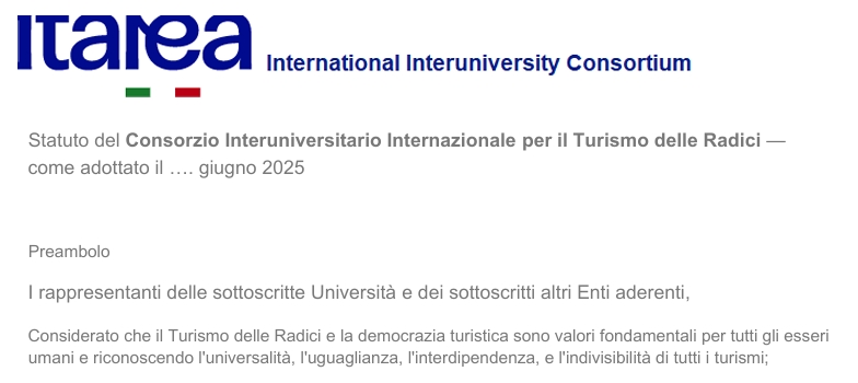 Statuto del "Consorzio Interuniversitario Internazionale del Turismo delle Radici"